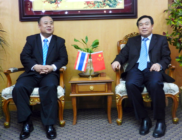 泰国华人青年商会会长李桂雄偕执行会长张扬,副会长张创标、钟和武,会长助理王少青,秘书长时磊,主任许俊龙,总干事黄成等,于2012年2月6日上午在青商会热烈迎接中国海外交协会副会长王杰率中国国务院侨办、中国海外交流协会代表团一行莅访,宾主进行亲切茶话座谈会,气氛温馨愉快。