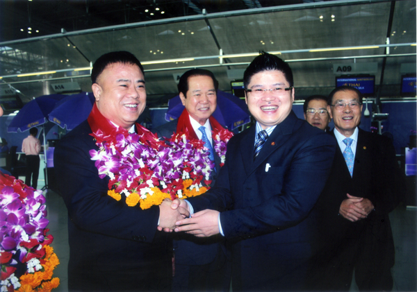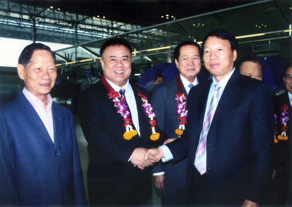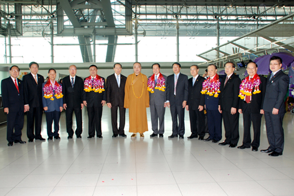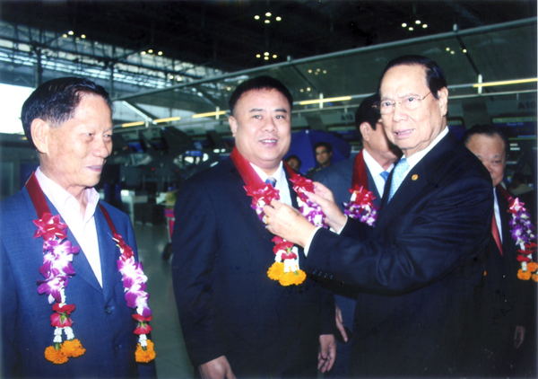 二 0 一 二年二月二十二日至二十六日,中华全国归国华侨联合会在厦门召开中国侨联亚洲地区海外顾问、委员、青年委员年会,本会会长李桂雄应邀出席年会。二月二十一日上午,从曼谷素旺那奔国际机场乘泰航班机直飞厦门,出发前,获中国驻泰王国大使馆侨务参赞方文国、中华总商会永远名誉主席吴宏丰博士,本会执行会长张扬等前往机场挂花欢送,祝李桂雄会长出席年会满载而归。