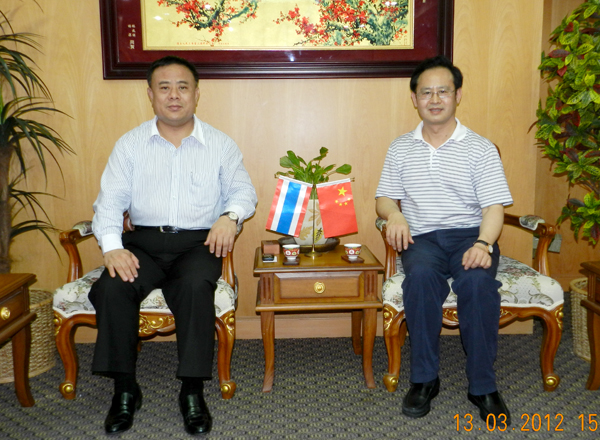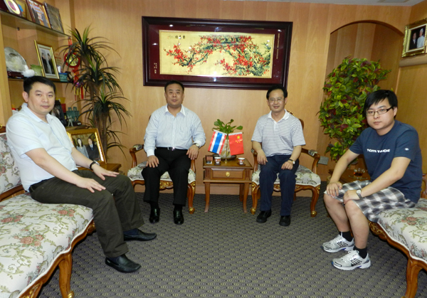 世界铁路合作组织(铁组)委员会副主席、中铁驻会委员、中国书法家协会理事、中国铁路书法家协会主席王勇平先生莅泰出席在曼谷举行的“联合国亚洲部长级运输会议”期间,在泰国华人青年商会顾问李光龙陪同下于2012年3月13日下午抵泰国华人青年商会访问,受到李桂雄会长等的热情迎接,进行亲切叙谈。