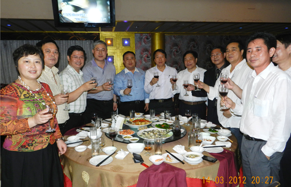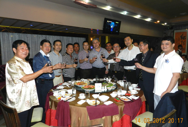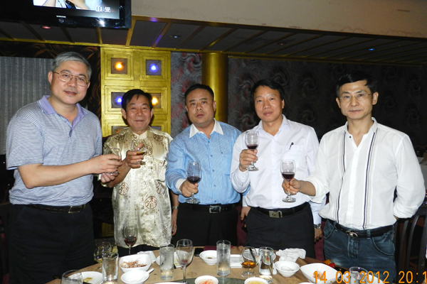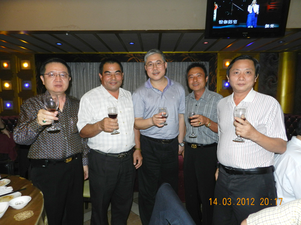 2012年3月14日(星期三)晚,微风轻拂,暖意融融。泰国华人青年商会掌舵人李桂雄会长偕副会长及常执委数十人,假座曼谷美丽多姿湄南河畔红头船俱乐部大酒楼潮汕厅,设丰盛潮筵宴请老朋友中国华文教育基金会左志强副理事长兼秘书长率领的代表团一行八人,中国驻泰大使馆侨务参赞方文国暨秘书许建民、张叶飞、索德波、黄瑞卿等出席光陪。