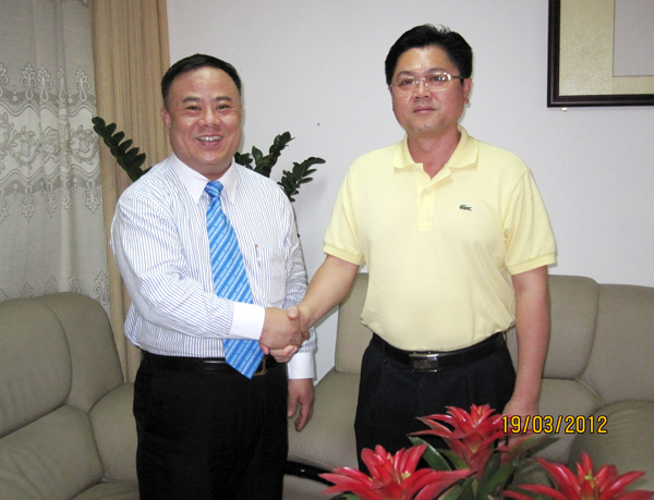 泰国华人青年商会会长李桂雄偕顾问马文钦、马长溪一行,于2012年3月19日前往中国海南省海口市考察访问,受到海口市琼山区委书记王飞暨统战部长吴光亮等领导的热烈欢迎,进行亲切洽谈磋商,达成合作共识。