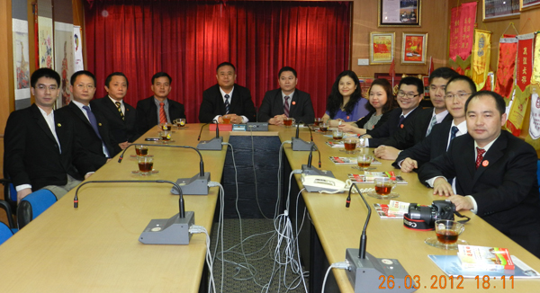 中国深圳网商会会长吴君先生率领代表团成员童晓芸理事长,副会长郑建宝,理事叶德明、洪蜀盛、何娇莲,宣传部长钟宝玲,秘书长何理刚一行,于2012年3月26日下午访问泰国华人青年商会,受到李桂雄会长暨锺和武副会长,杨艳峰会长助理,许俊龙主任,马旭森常委及黄成总干事热情迎接并亲切座谈。