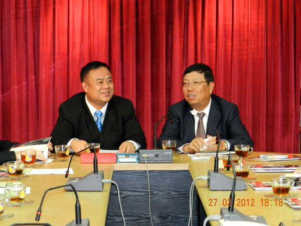赵乐秦书记是一位稳重直爽,干脆利落的领导者,他的讲话开门见山,直切主题;很高兴来久闻大名的泰华青商会访问,特别是李会长是崇左人的老朋友,今天有宾至如归之感。来访的主要目的,一是拜会李桂雄会长及各位常执委,联络感情;二是邀请李会长再次亲自率团去广西,到崇左访问考察,实地了解崇左开发建设成就及投资兴业政策环境。并提供二个时间段供选择:一是今年4月8日至10日崇左市举办第二届国际商务文化节;二是今年9月份南宁市举办第九届东盟博览会。贵会成员都是泰华青年企业家精英代表,请到崇左市参观考察,投资兴业,合作共赢。接著简介崇左市概况;感谢东道主的盛情接待;祝青商会会务蓬勃发展,取得更大的成绩。