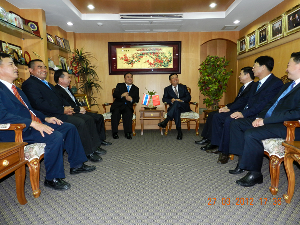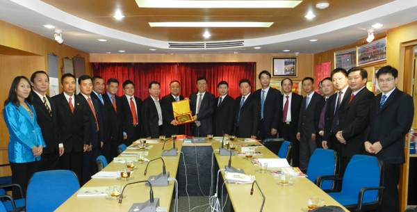 中国广西最年轻的地级市、面向东盟开放合作的区域性新兴城——崇左市,市委书记、市人大常委会主任赵乐秦先生率招商考察团一行十四人,於2012年3月27日下午访问泰国华人青年商会,获李桂雄会长偕执行会长张扬暨副会长、常执委们热情迎接并亲切座谈。是晚,东道主青商会李桂雄会长特地邀请赵乐秦书记一行,登上豪华游船,观赏美丽多姿湄南河迷人夜景,了解华侨华人在泰生活的有关风俗习惯和情况。