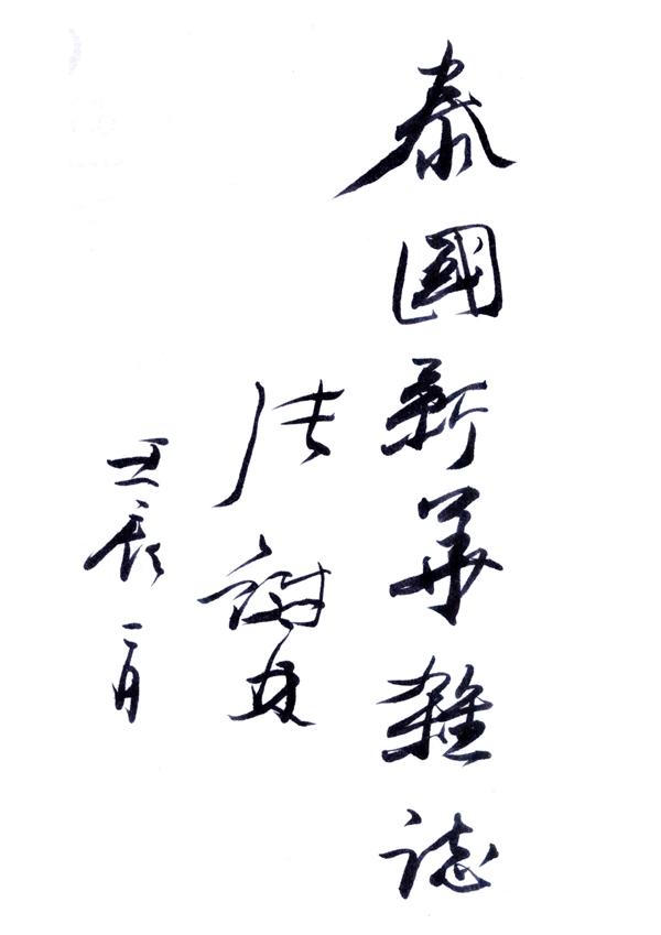 在活动现场,李桂雄会长与袁立(袁莉)小姐及张铁林先生就有关如何促进泰中两国电视电影、艺术文化交流等进行相互广泛探讨。李会长诚邀两位大艺术家作为泰中友好的使者,莅泰考察、访问、旅游,举办艺术文化活动,也可让泰国人民、华侨华人亲睹银幕上仰慕已久的两位中国著名影星的风采。张铁林先生还赠送亲自题写的三幅硬笔书法作品予李桂雄会长,分别是:“泰国新华杂志”;“泰中文化桥梁”;“举头望明月,低头思故乡”。