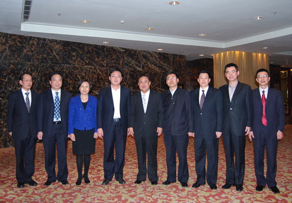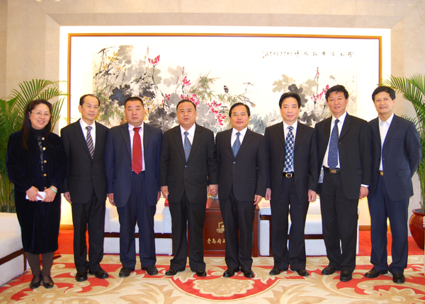 (左至右)青岛侨联副主席贺培蔚、青岛市潮商会执行会长陈家桂、泰华青商会顾问郑侧强、泰华青商会会长李桂雄、青岛市长张新起、青岛潮商会会长周彬、青岛市政府李政民秘书长、青岛市侨联主席胡辛等在会见时合影。
