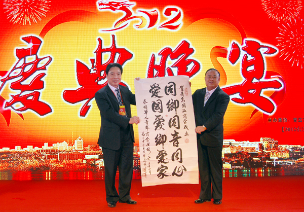 李桂雄会长赠墨宝祝贺青岛潮商会会长周彬。