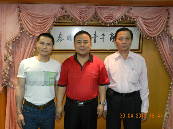 二○一二年四月三十日,泰国华人青年商会海外顾问、深圳市巴克莱投资有限公司总经理荘泽贤先生访问青商会,受到会长李桂雄、福利主任许俊龙等热情接待。李会长与荘顾问亲切座谈,感谢荘泽贤顾问一直对青商会的支持,就两地投资合作做相互了解。图为李会长与荘顾问、许主任等合影。