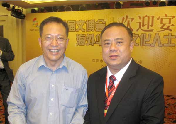 深圳市市委常委宣传部长王京生与李桂雄会长在文博会上合影。