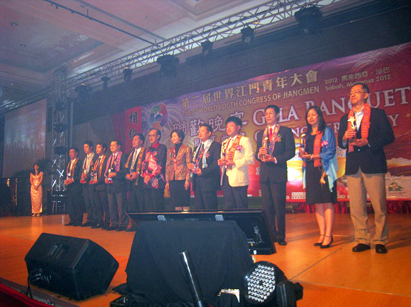 邝锦荣副会长(右三)荣获“世界江门十大杰出青年”称号。