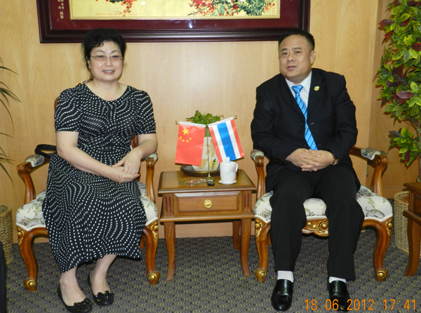 2012年6月18日下午汕尾市友好访问团抵泰国华人青年商会,受到会长李桂雄,副会长李荣、张创标,主任许俊龙等欢迎接待。李会长致欢迎词,首先请刘小静副市长转达对市委郑雁雄书记和市政府吴紫骊市长的问候,并热烈欢迎刘小静副市长一行莅会参访。李会长说到会客厅地方虽小,但是显的很温馨,今天汕尾市访问团能够到泰国华人青年商会访问感到非常的高兴。并做了文化交流,李会长说通过这次考察一定能够促进泰国华人青年商会和汕尾的友好,能够让青年企业家了解汕尾,让泰国青年企业家有更多的机会到汕尾发展。增进青商会和汕尾的往来。李会长还说:现在在广西云南一带来泰的留学生越来越多了。泰国许多大学和中国的大学都有交换学生的往来。在泰国学习不比欧美国家差,所以希望汕尾市市政府能够加强和泰国大学的联系与合作,让更多留学生能够来泰国上学,体验泰国的校园生活。