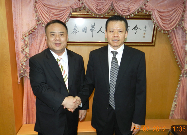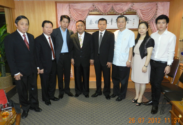 由厦门市委常委政法委书记詹沧洲率领的厦门友好代表团,在泰王国驻厦门总领事馆总领事哲萨搭•差湾帕克和泰王国驻厦门总领事馆助理韦丽萍的陪同下,于2012年7月26日(星期四)访问了泰国华人青年商会,受到了会长李桂雄、副会长林嘉南、主任许俊龙等的热情接待。