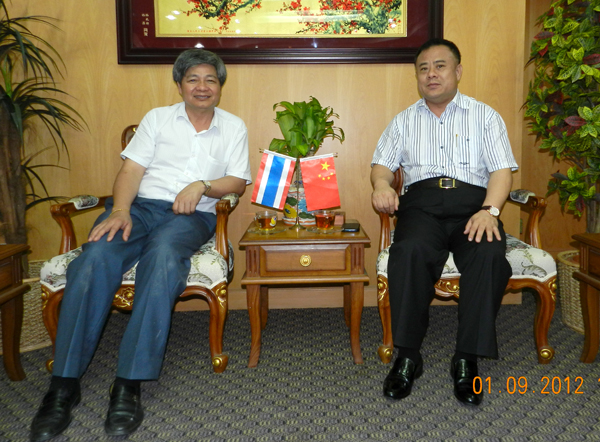 2012年9月1日,广东省政协第十届特聘委员、广东惠州外商投资者协会常务副会长、泰昌制品厂有限公司董事总经理王观强抵泰国华人青年商会访问,受到会长李桂雄等热情接待。座谈中,李会长与王会长达成共识:把泰华青商会与惠州外商投资者协会建立成友好合作单位,共同发展,互通信息。图为:李会长与王副会长亲切座谈时影。