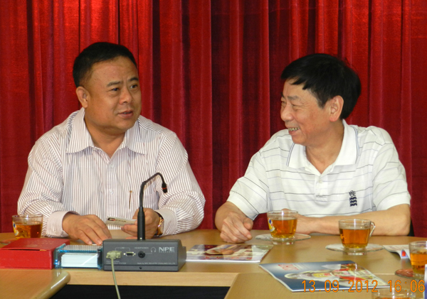 中国广东省佛山市零售商业行业协会名誉会长黄振辉先生(原佛山市副市长)偕佛山市政协副秘书长黄卫平,佛山市陶瓷行业协会副秘书长白梅,佛山市零售商业行业协会副会长梁伟强,秘书麦淑玲及广州幸民泰商业有限公司佛山分司经理何一波,佛山市嘉益实业有限公司经理张巍一行,于2012年9月13日下午访问泰国华人青年商会,获李桂雄会长偕副会长黄懿光,会长助理王少青,主任许俊龙、张柱,常委岳群及总干事黄成等热诚迎接。