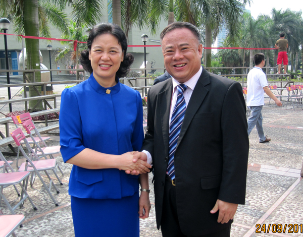 广东省副省长招玉芳与李桂雄会长亲切握手谈话。