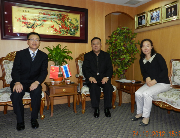2012年10月24日下午,泰国华人青年商会李桂雄会长于商会会客厅会见了深圳网商会理事单位:深圳市迈时空科技有限公司总经理王瑞君与深圳市丰韩昱英实业有限公司、中山市丰韩金属有限公司总经理朴英,宾主进行了亲切友好的交流。李会长欢迎两位来访,祝愿此次参加25日至28日在泰举办的“国际酒店用品展”获得丰硕成果。并表示:听完两位的介绍和看了相关产品的资料,感到很满意。本人将会把您们的产品介绍给泰国广大的用户、建材公司和装修公司。目前泰国政治、经济情况稳定发展,本人认为您们公司的产品在泰国应该有很大发展前景和市场。青商会这个平台很乐意为您们的发展架起桥梁。王总经理和朴总经理对李会长的热诚帮助表示衷心感谢。双方在轻松愉快的气氛中交谈并达成共识。