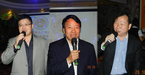 方文国参赞应邀致词中,盛赞泰华青商会充满朝气活力,是泰华新一代侨团中坚骨干队伍,是最有前途和希望的接班人;希望全体执委在李桂雄会长的领导下,团结合作,再接再厉,更创佳绩。同时还提到,11月6日,中国经济专家学者代表团将在泰国曼谷访问期间,与泰华侨社合办经济研讨座谈会,请青商会执委们热烈参加,共襄盛举。