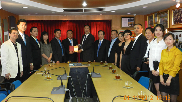 中国河南省商务厅副厅长戴松军先生率领访问团,成员有河南省外商投资管理局驻东南亚联络处常务副主任赵晏华;河南省外商投资管理局驻东南亚联络处史栓玲;河南省商务厅对外贸易处调研员张新亮;副调研员姜红;洛阳市商务局对外贸易科科长宋晓春;河南中艺进出口有限公司总经理邢修省一行,由泰国正大集团副总裁傅学军陪同,于2012年11月1日上午访问泰国华人青年商会。抵达时,受到泰华青商会李桂雄会长偕副会长钟和武;会长助理许少玉;秘书长时磊;主任许俊龙、张柱;总干事黄成等热情迎接。宾主亲切座谈交流,气氛融洽。中午,青商会假泰京是隆路香格里拉大酒楼宴请该团。