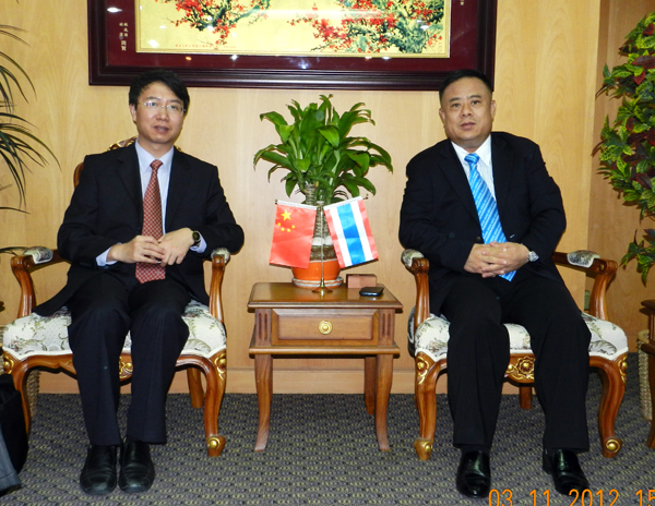 中国和平统一促进会执行副秘书长杭元祥先生率领连锦添(中国统促会理事、人民日报海外版港澳台部主任)、张晓群(中国统促会宣传部处长)、宋磊(中国统促会海外部干部)、刘康宁(中华海外联谊会秘书处干部)一行,于2012年11月3日下午访问泰国华人青年商会,抵达时,获李桂雄会长偕副会长张创标,罗欣迎;顾问吴炳林;会长助理连剑丰;主任许俊龙,张柱;总干事黄成热情欢迎。宾主亲切座谈,场面轻松愉快。