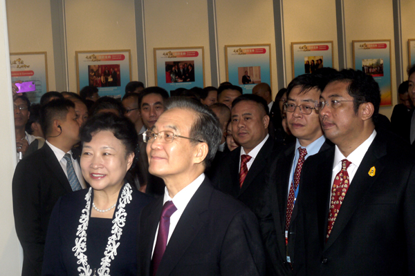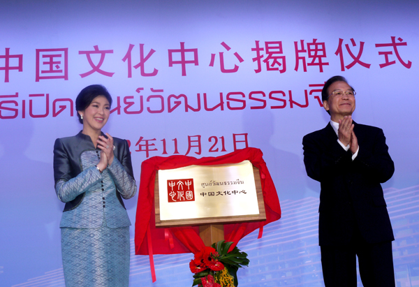 英拉总理、温家宝总理共同主持“曼谷中国文化中心”开幕式。
