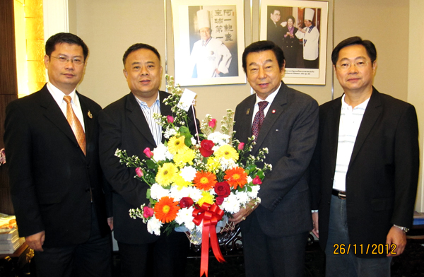 泰国华人青年商会李桂雄会长偕副会长黄懿光,会长助理叶沐强向本会名誉会长、泰国国会资深人民代表郭立胜先生敬献鲜花,衷心祝贺他荣任泰国国会泰中友好联合会主席,衷心祝愿郭主席政躬康泰,为促进泰中友谊、文化交流、经贸合作作出新贡献。