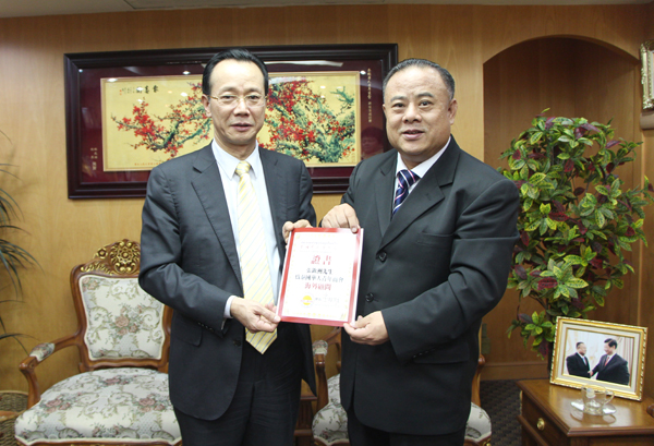 李桂雄会长颁发海外顾问聘书予张钦洲先生。