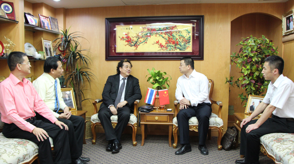 2013年1月3日(星期三)下午,泰国华人青年商会副会长李荣携主任许俊龙,总干事黄成,在青商会会客室热情迎接中国厦门市诚久工贸有限公司总经理黄军勇,副总经理张利春莅会访问,宾主进行亲切座谈交流,气氛融洽愉快。