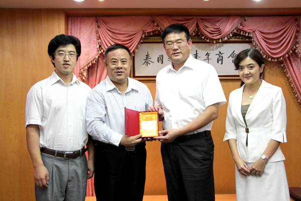 最后,宾主互祝新年快乐,事业进步,合影留念。李会长并赠送纪念品予明社长一行。