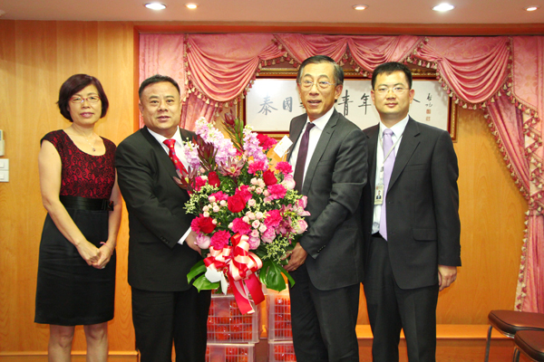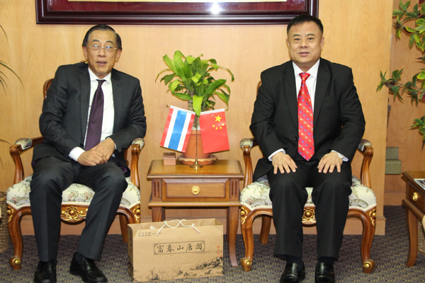 驻泰中资企业商会会长、中国银行驻泰分行总经理车军偕高级职员徐建中一行,于2013年2月7日下午访问泰国华人青年商会,受到李桂雄会长的热情迎接并亲切交谈,气氛轻松愉快。车总经理并向李会长敬献鲜花贺年,宾主互赠纪念品,合影留念。