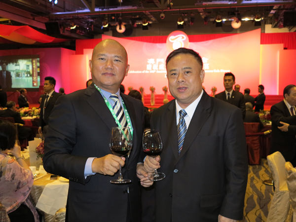 澳门特区行政议员(本会海外顾问)陈明金与李桂雄敬酒。