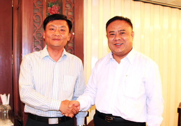 泰华青商会李桂雄会长与杨楠上校亲切握手欢叙。
