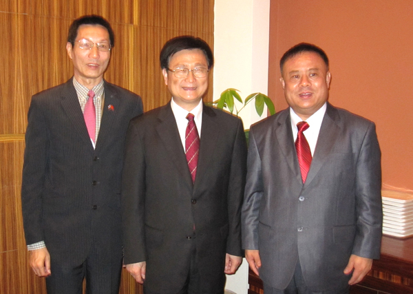 方健宏厅长(中)、李桂雄会长(右)、邝锦荣副会长(左)。