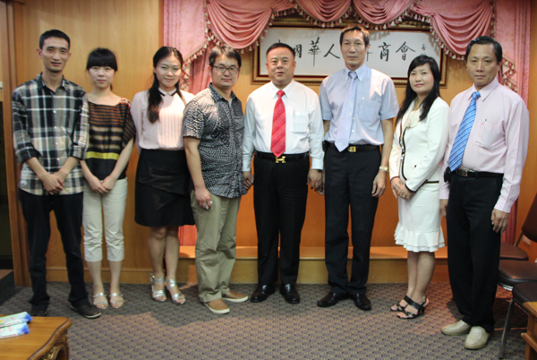 人民日报社云南分社主任徐元锋、人民日报社云南分社记者胡洪江,人民日报社云南分社记者林娟娟,在人民日报社亚太中心分社记者暨佩娟陪同下,于2013年6月13日下午到泰国华人青年商会来采访,受到李桂雄会长、邝锦荣副会长、许少玉会长助理、许俊龙主任、黄成总干事的热情接待。因李会长临时另有要事要办,接受采访的任务最后由邝锦荣会长负责。邝会长随即与诸位记者就泰国、云南的交通运输、人文环境、经贸合作、旅游发展等话题进行广泛探讨和分析。