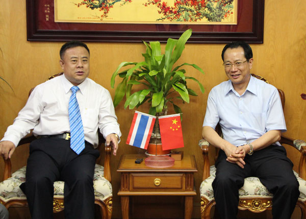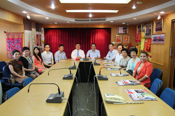 中国全国政协委员、著名青年企业家、裕通实业控股集团董事长、泰国华人青年商会海外顾问张钦洲暨夫人翁秀容;中国工商银行汕头分行行长许长明;裕通实业控股集团副总裁张东锐暨夫人龙秀媚;副总裁陈发颖及董事长助理魏淋一行,于2013年6月19日上午访问泰国华人青年商会,受到李桂雄会长、谢崇通副会长等的热情接待。