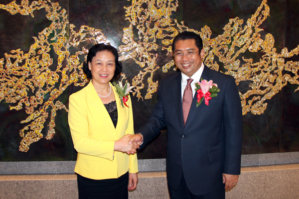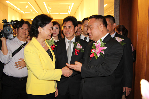 泰国文化部部长颂他耶‧坤本与广东省副省长招玉芳亲切握手。