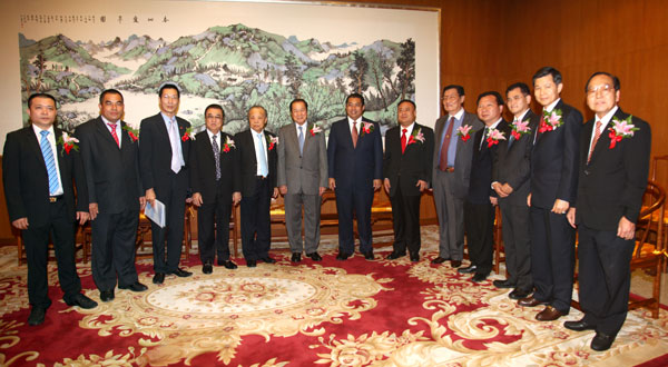 左至右;庄基锋、张创标、邝锦荣、黄迨光、刘暹有、刘锦庭、颂他耶部长、李桂雄、蔡义批、林嘉南、谢崇通、徐光辉、吴金城等合影