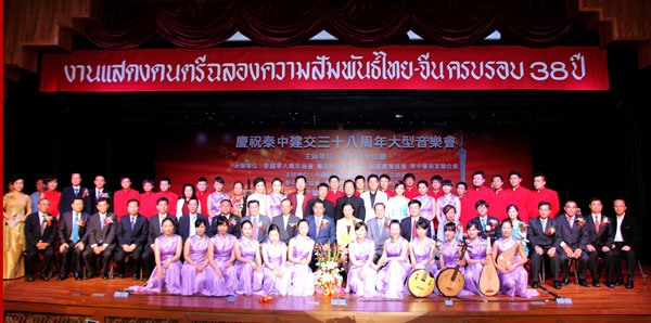 风华粤韵天使城,泰中友谊万古青。泰国观众期待已久的“庆祝泰中建交38周年大型音乐会”圆满闭幕了!2013年6月25日,主办、承办、支持等单位举行了隆重的开幕剪彩仪式。晚7时半,全体领导嘉宾起立,奏唱泰国国歌和中华人民共和国国歌。音乐会正式开始,大会主席,泰国华人青年商会李桂雄会长首先上台致辞:今年7月1日,是泰中建交38周年的大喜日子,为了庆祝泰中建交38周年,进一步推动泰中两国的友谊和文化交流。在泰中两国政府,中国驻泰王国大使馆、广东省人民政府、泰中友好协会、泰国中华总商会和泰国潮州会馆的支持下,由广东省文化厅主办,泰国华人青年商会、曼谷中国文化中心、泰国广肇商会和泰中艺术家联合会承办。经过一个多月的筹备工作,今天隆重举行。这是泰中两国友好和文化交流的一大盛事,意义重大。整个筹办过程,得到泰中两国政府,广东省人民政府和泰华各界领导的支持和鼓励。在此,我代表本次大会组委会全体同仁,向本次大会关心与支持者表示衷心的感谢和崇高的敬意。