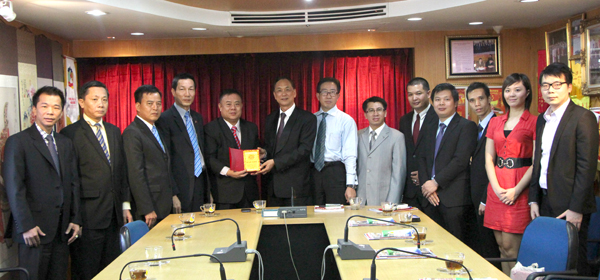2013年7月1日上午,将于本月11日正式成立的泰国广西总商会主席李宇明,执行主席林茂强,副主席莫鹰萧、黄玉洪、庞伟、刘汉政,新闻部主任李珂珂一行访问泰国华人青年商会,受到青商会会长李桂雄,副会长邝锦荣、钟和武,主任江泽锋、许俊龙,总干事黄成等的热烈欢迎和接待。