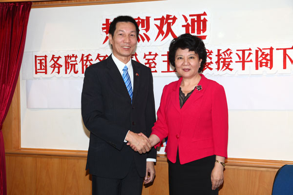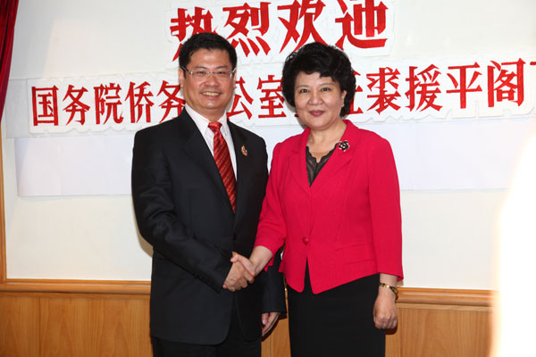 钟和武副会长与国侨办主任裘援平阁下亲切握手
