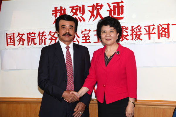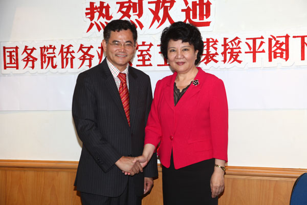 黄懿光副会长与国侨办主任裘援平阁下亲切握手