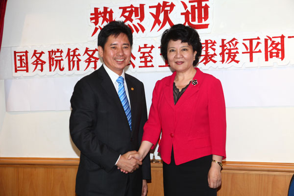 谢崇通副会长与国侨办主任裘援平阁下亲切握手