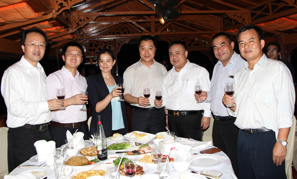 当裘主任抵达时,以李桂雄会长为首的泰华青商举行了的欢迎仪式,场面隆重,气氛感人。鲜艳的红色横幅映着泰华青商诚挚的热情;长长的欢迎标语载着海外侨胞深厚的情谊。青年商会参加欢迎接待的有:会长李桂雄,执行会长张扬,常务副会长黄增滨、邝锦荣,名誉会长吴亮泰,副会长林兆祥、谢崇通、张创标、钟和武、黄懿光,顾问吴炳林,会长助理王少青、胡坚毅、许少玉、郑丁禹,主任马嫣、许俊龙,总干事黄成等。