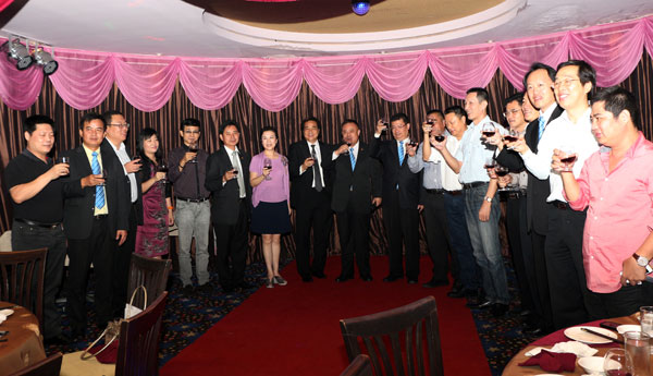李桂雄会长在致词中与兄弟姐妹们一起回顾青商会这十三年来付出的艰辛和收获的硕果,并在会议上给大家通报了将于2015年东盟一体化的贸易会给青商会同仁带来不少商机,敬请各位对东盟一体化的贸易做好相关的准备。