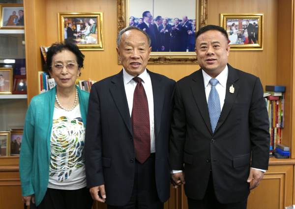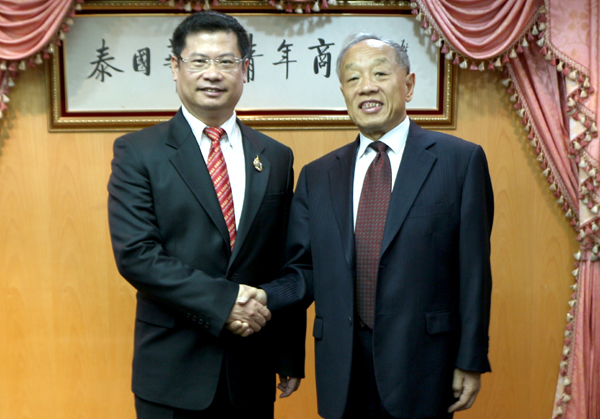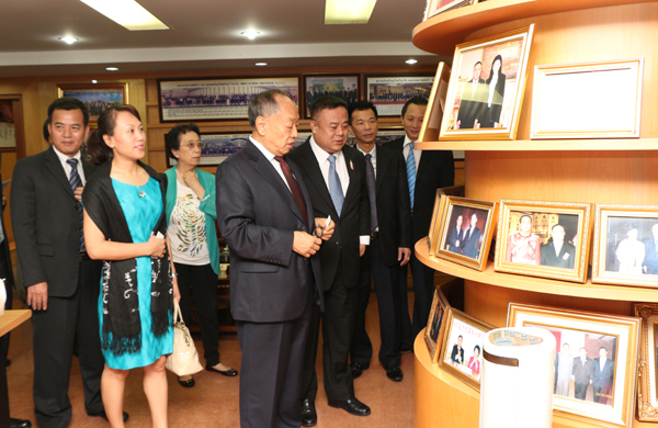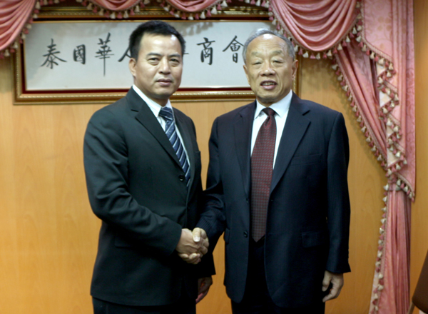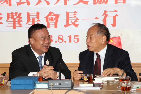 中国公共外交协会李肇星会长(中国前外交部长)暨夫人秦小梅女士于2013年8月15日中午,率团友好访问泰国华人青年商会。该团成员有:李肇星会长;中国前外交官联谊会名誉副会长、中国明星艺术团团长(慈善大使)秦小梅女士;中国-东盟中心马明强秘书长;王昱秘书。泰华青商会会长李桂雄,名誉会长李海涛,常务副会长林嘉南、邝锦荣,副会长钟和武、黄懿光,会长助理胡坚毅,主任欧阳建生、马嫣、许俊龙、江泽锋,总干事黄成等齐聚商会,为代表团的莅临举行了欢迎座谈会,场面温馨,十分感人。