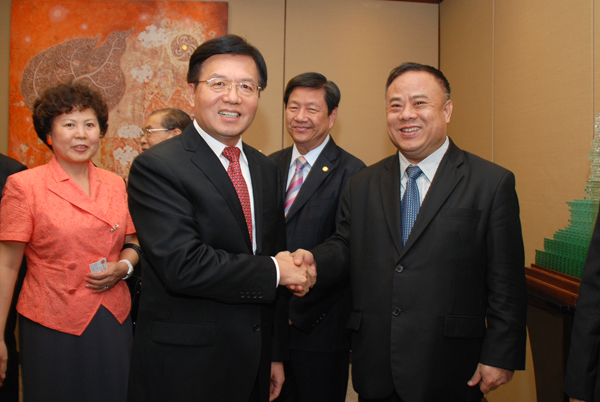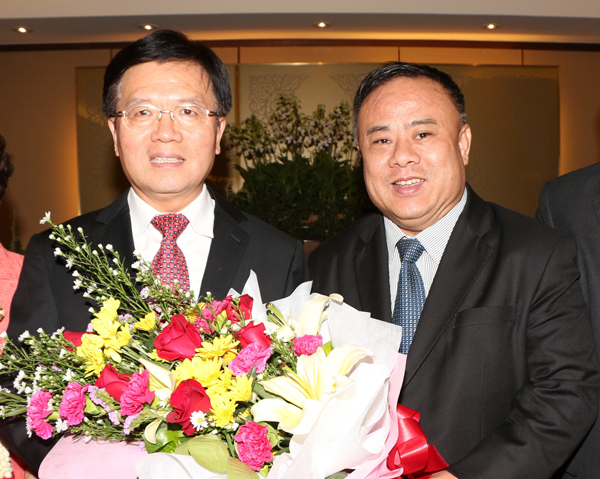 李桂雄会长献鲜花欢迎宁赋魁抵泰履新。