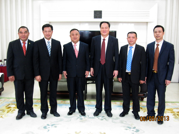 朱明国副书记(右三)、林雄会长(左二)会见李桂雄会长(左三)、张创标副会长(左一)、庄基锋副会长(右二)、王少青会长助理(右一)时合影。