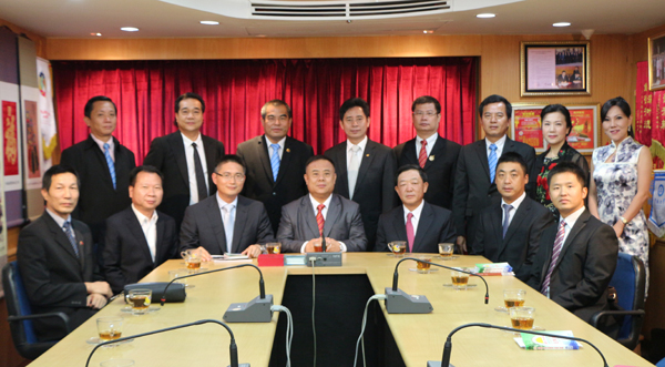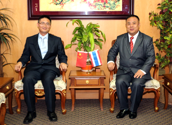 当天下午5时许,高振廷、朱伟东二位参赞、盖绍飞秘书兼领事、石奕博秘书莅访泰国华人青年商会,受到会长李桂雄先生暨诸位同仁:常务副会长林嘉南、邝锦荣、副会长林兆祥、李荣、张创标、钟和武、黄懿光、名誉会长方舫、主任许俊龙、总干事黄成的热情接待。