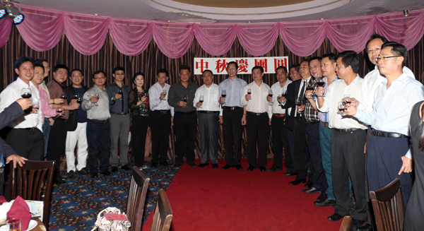 当晚6时许,青年商会与中国大使馆领事部联谊庆中秋晚会在红头船餐厅举行,当高振廷参赞、朱伟东参赞等一行抵达红头船餐厅时,受到在场恭迎的百余位商会同仁的热烈欢迎。以“中秋庆团圆”为主题的联欢会正式开始,方文国参赞也莅临会场,三位参赞与李桂雄会长共同上台,向大家致以节日问候,祝愿大家,家庭幸福、身体健康、事业发达、万事如意!