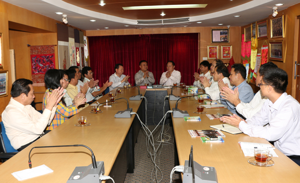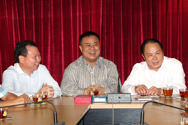 崇左市代表团与表商会领导亲切座谈欢乐场面。