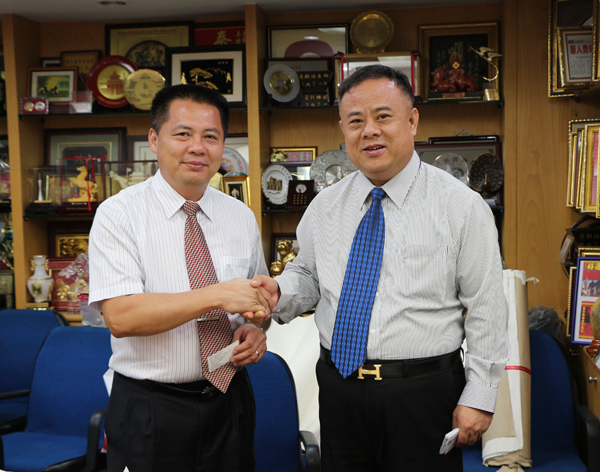 李桂雄会长与仲铭锦主任亲切握手。